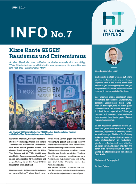 Seit Juni 2018 erscheint der Infoletter der Heinz Trox-Stiftung jährlich.